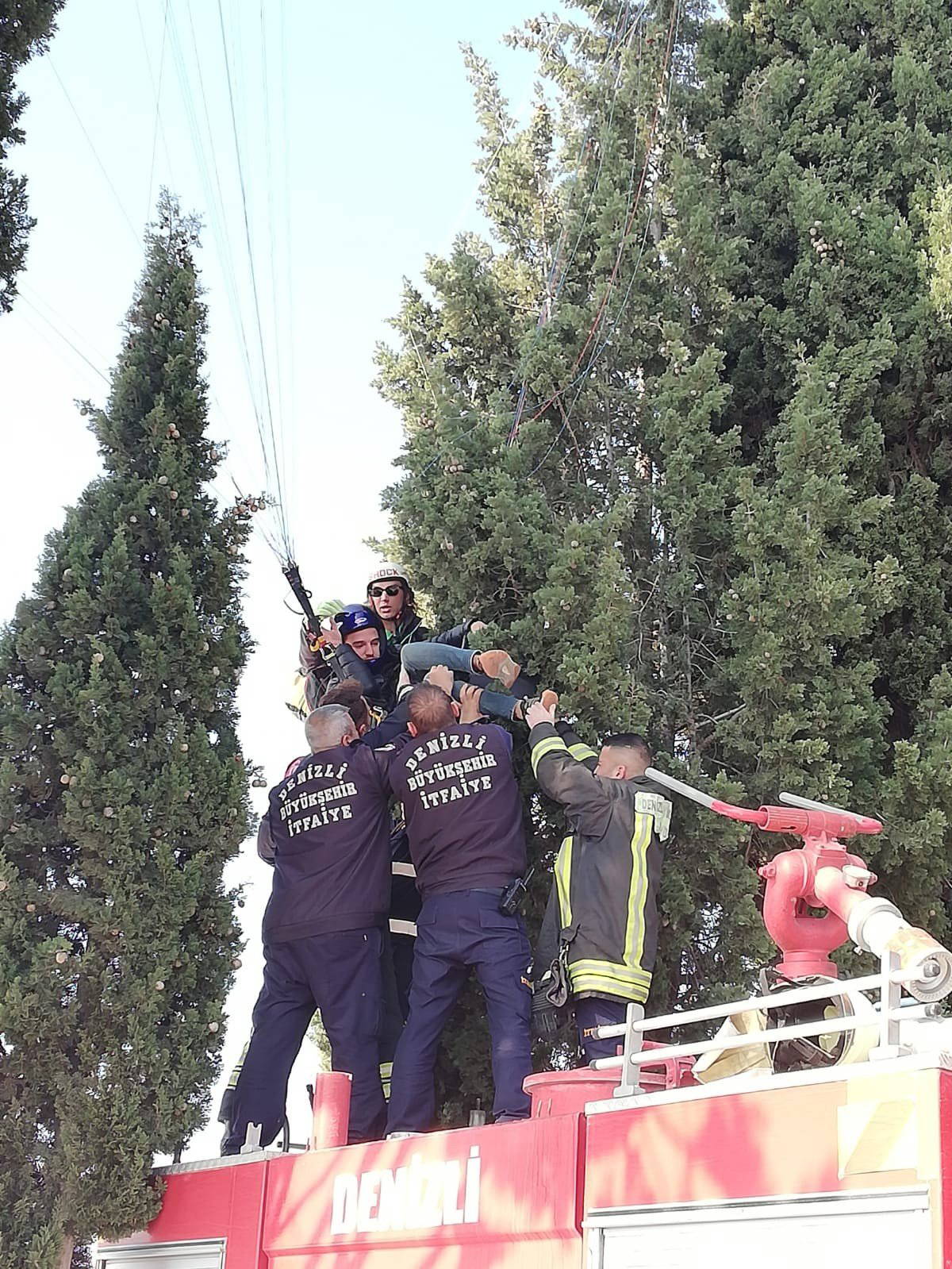 Olay, Pamukkale ilçesindeki travertenler bölgesinde meydana geldi. Yamaç paraşütü pilotu Furkan Yurtsev ile yolcusu olan Hakan Göksu, iniş yaptıkları sırada kontrolü kaybederek ağaç dallarına asılı kaldı.Çevredekilerin ihbarı üzerine olay yerine gelen itfaiye ve 112 ekipleri, Yurtsev’i ile Göksu'yu kurtardı. Pilot ve yolcu ambulansta ayakta tedavi edildi.