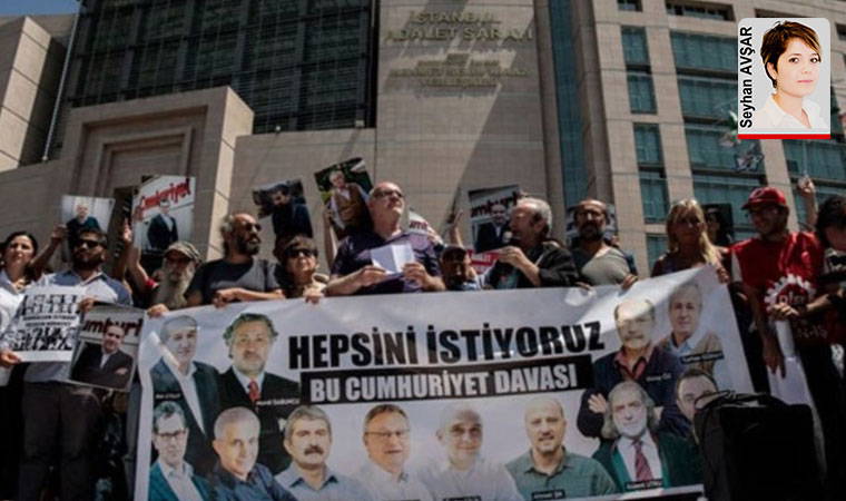 Gazetemiz eski yönetici, yazar ve ve çalışanları hakkında yerel mahkemenin verdiği mahkûmiyet kararlarının Yargıtay 16. Ceza Dairesi tarafından bozulmasının ardından Cumhuriyet davası dün yeniden görüldü. Kararını açıklayan mahkeme heyeti gazeteci Kadri Gürsel hakkında beraat kararı verirken diğer sanıklar hakkında ise Yargıtay’ın verdiği bozma kararına direndi.