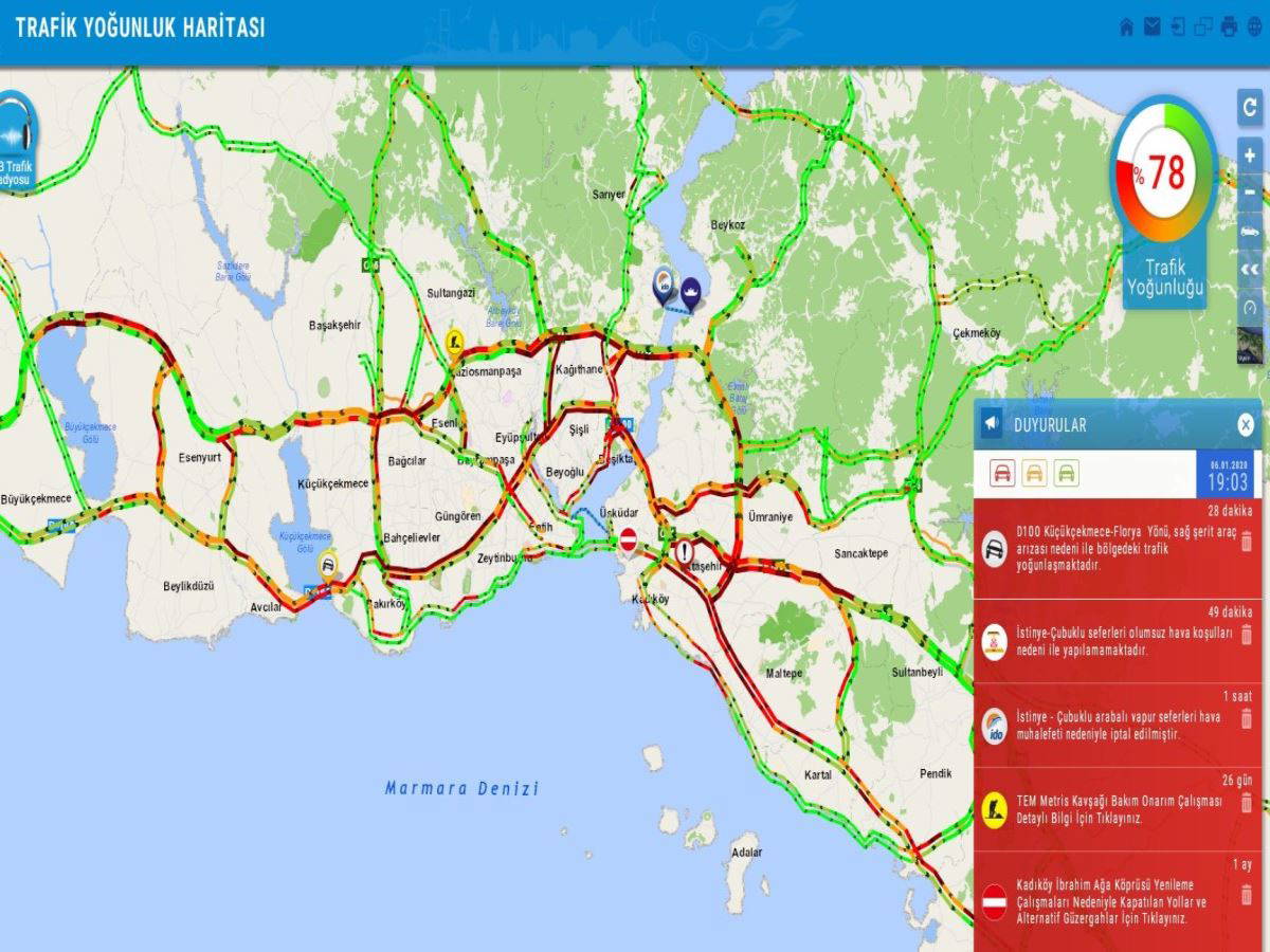 noktasına gelirken, İBB trafik yoğunluk haritasına göre 18.30 itibarıyla trafik