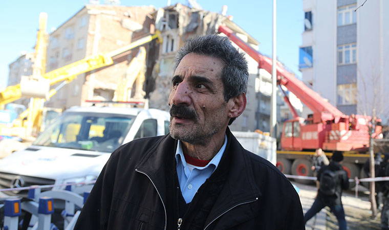“Ölenler komşularım. Benim terzi dükkânım var. Makineler enkaz altında kaldı. Ne yapacağımızı şaşırdık. Her şey sizlerin gözünüzün önünde. Buradaki binalar eski ve 1990’lı yıllarda yapılan binalar. Binaların doğru düzgün temeli yok. Bir karış beton atıp üzerine bina yapmışlar.”