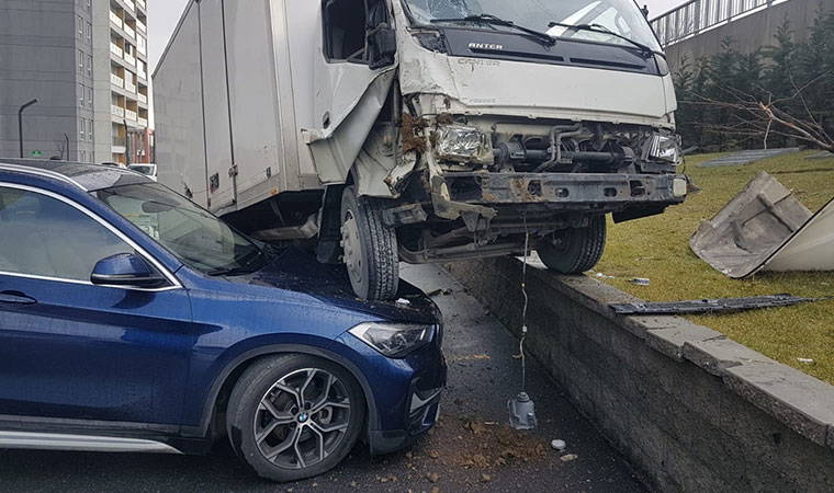 Avcılar, TEM bağlantı yolunda sürücüsünün direksiyon hakimiyetini kaybettiği kamyonet önündeki otomobile çarpıp, bariyerleri aşarak otoparka girdi. Kamyonet, park halindeki lüks aracın üstüne çıktı. Kazada yaralanan kamyonet sürücüsü hastaneye kaldırıldı.