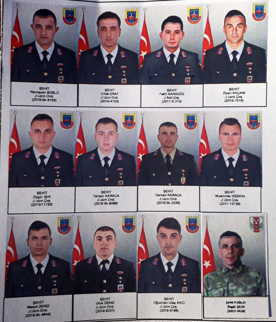 Şehitler Uzman Çavuş Özgür Işık (Düzce Merkez), Uzman Çavuş Özen Akçam (Artvin, Ardanuç), Uzman Çavuş Ramazan Süslü (Aksaray, Sultanhanı), Uzman Çavuş Ufuk Deniz (Kastamonu, Tosya), Jandarma Astsubay Çavuş Fatih Karagöz (Kocaeli, Kartepe), Uzman Onbaşı Osman Karaca (Tokat, Almus), Uzman Onbaşı Cihat Erat (Erzurum, İspir), Uzman Çavuş Muammer Keskin (Aydın, Çine), Uzman Çavuş Oğuzhan Ulaş Avcı (Kars, Arçapayı), Uzman Çavuş Mesut Deniz (Kahramanmaraş, Türkoğlu), Uzman Onbaşı Tarkan Karaca (Eskişehir, Sivrihisar) Van’ın Çatak ilçesinden güvenlik korucuları Hekim Kazgan, Nimet İnçamur, Abdulselam Mantaş, Tahsin Karan, Bayram Bulcar, Metinb Mantaş ve Mehmet Esen için Van Jandarma Filo Komutanlığında tören düzenleniyor.
