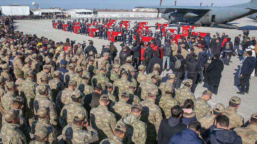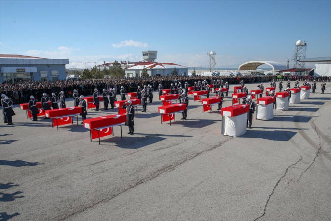 Törenin ardından çığ felaketinde şehit düşen jandarma astsubay Fatih Karagöz (Kocaeli), uzman çavuşlar Özen Çam (Artvin), Ramazan Süslü (Aksaray), Ufuk Deniz (Kastamonu), Özgür Işık (Düzce), Muammer Keskin (Aydın), Oğuzhan Ulaş Avcı (Kars), Mesut Deniz (Kahramanmaraş), uzman onbaşılar Osman Karaca (Tokat), Cihat Erat (Erzurum), Tarkan Karaca (Eskişehir) ile Hakkari'nin Çukurca ilçesindeki bir üs bölgesinde yapılan bakım faaliyeti esnasında meydana gelen kazada şehit olan piyade sözleşmeli er Özgür Çelik'in naaşları, tören mangasınca omuzlarda taşınarak memleketlerine uğurlanmak üzere askeri uçağa konuldu.