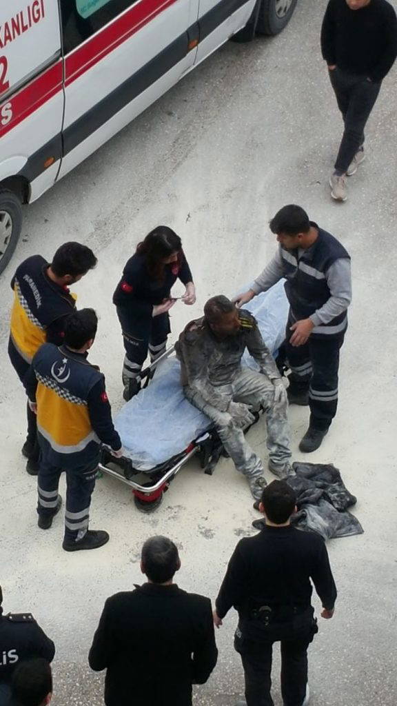 Olay yerine gelen sağlık ekipleri, Yarıcı'nın tedavisini yaparken, üzerine yapışan elbiseleri de kesilerek çıkarıldı. İntihar girişiminde bulunan baba Hatay Devlet Hastanesi’ne götürülmek üzere ambulansa bindirildi.