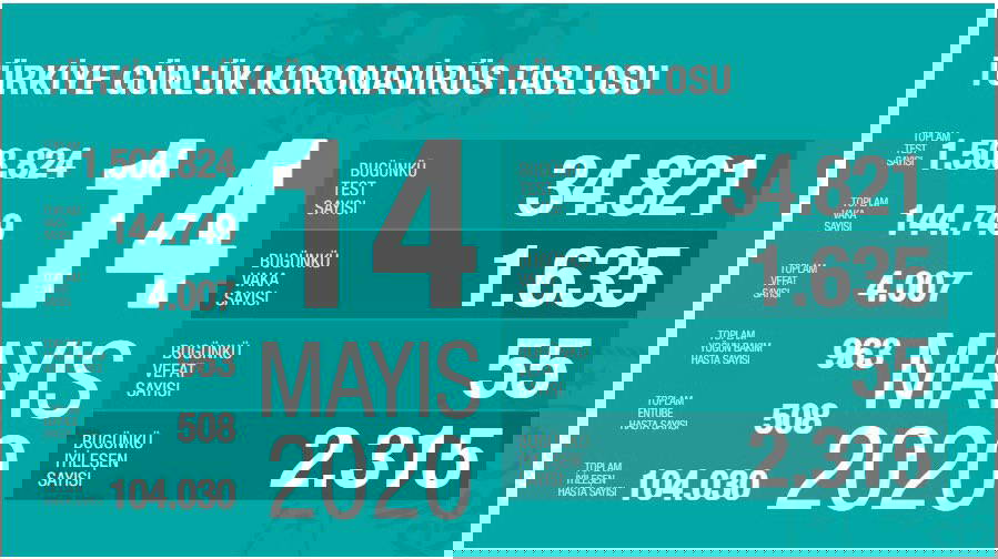Türkiye'de bugün itibariyle 55 yurttaşın daha yaşamını yitirmesiyle birlikte koronavirüs nedeniyle yaşamını yitirenlerin sayısı 4 bini aşarak 4 bin 7'ye yükseldi. Son 24 satte testi pozitif çıkanların sayısı ise bin 635 kişi artarak 144 bin 749 oldu.