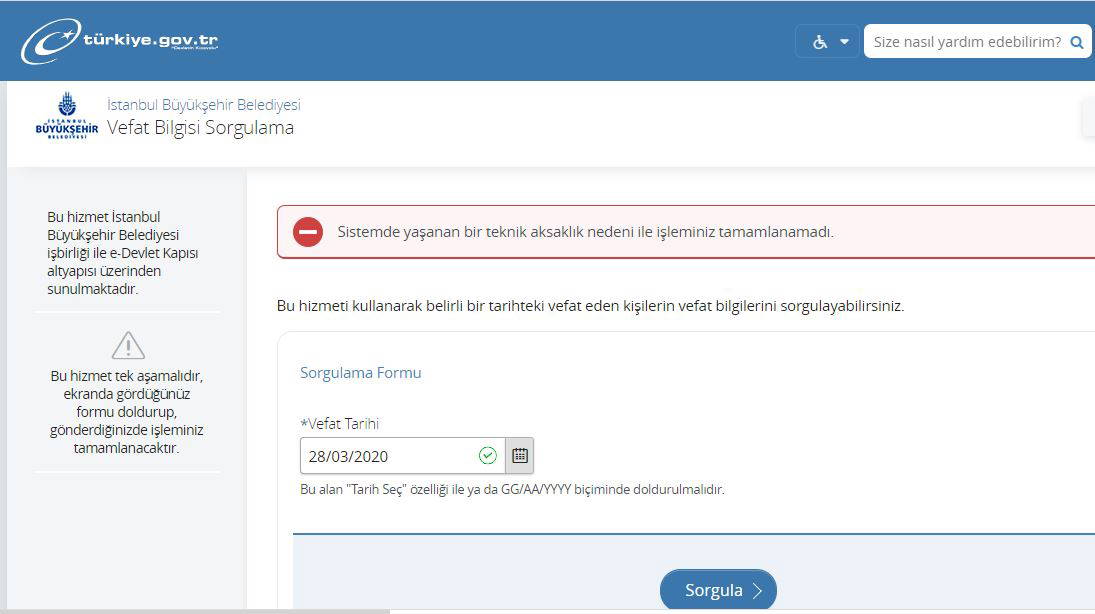 Vefat bilgilerinin yer aldığı sistemde daha sonra erişim sıkıntısı yaşandı.