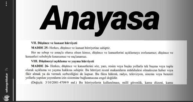 Görüşlerini belirttikleri için üst düzeydeki isimler tarafından yoğun şekilde eleştirilen ünlülerden Şahan Gökbakar, sessizliğini sosyal medya hesabından bozdu ve Anayasının düşünce özgürlüğüyle ilgili maddesini paylaşarak adeta kendilerine yöneltilen bu eleştirilerin anayasal haklarını engellemeye yönelik olduğuna dikkat çekti.