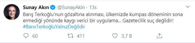 Tutuklanma kararının gece geç saatlerde gelmesine rağmen siyaset ve medya camiasında pek çok kişi twitter üzerinden karara tepki yağdırdılar. Atılan twitlerde tutuklama kararının siyasi olduğu dile getirildi.