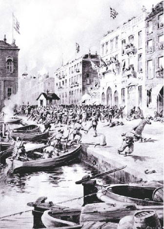 İşgalin ilk günü yaşanan vahşet ve şiddeti tasvir eden ve Avrupa gazetelerinde yayınlanan temsili bir resim. (The Graphic, 21 Haziran 1919, s.83-Atilla Oral, Kazım Özalp)