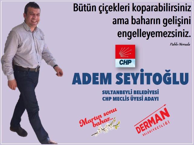 İBB Engelliler Biriminde 19 yıldır sözleşmeli işçi olarak çalışan Adem Seyitoğlu, AKP’den belediye meclis üyeliği için başvurdu. Adaylık başvurusunun kabul edilmemesi üzerine AKP’den istifa eden Seyitoğlu, CHP’ye geçerek belediye meclis üyeliği başvurusunda bulundu. Bunun üzerine CHP’den istifa etmesi istenen Adem Seyitoğlu hiç bir gerekçe gösterilmeden işten çıkarıldı. Tazminatı da ödenmeyen Seyitoğlu, “AKP’nin kemikleşen kadrosunu kıramadım. 19 yıl çalıştığım işimden bir gecede atıldım. Hizmet etmek için sadece AKP çatısı altında olmak zorunda değilim. Meclis üyelikleri tüzel kişilerden oluşur. Ben de CHP’den Meclis Üyesi adayı oldum. 20 Şubat’ta da yıllık izne çıkmak için başvuruda bulundum. 7 gün sonra da ihraç edildiğimi öğrendim” dedi.
