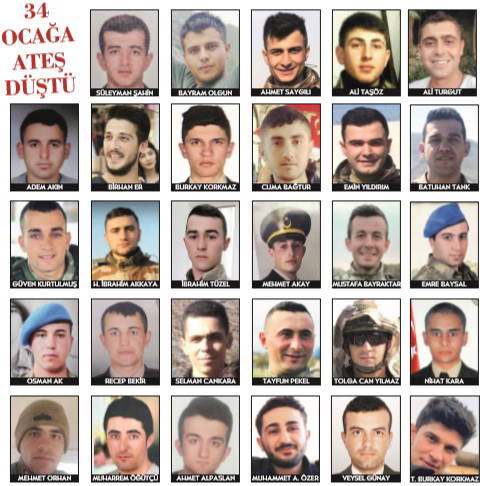 Piyade Astsubay Muharrem Öğütçü (25): Acı haber Bingöl’ün Karlıova ilçesinde yaşayan ailesine ulaştı. Şehidin evi Türk bayraklarıyla donatıldı. Köyde çobanlık yapan, 4 çocuk babası Ramazan Öğütcü, oğluyla 3 gün önce telefonda görüştüğünü belirterek “Bana dedi ki ‘Baba üzerimize yağmur yağıyor, ateşin içindeyiz.’ Sonra da bir daha haber alamadık. Bir kardeşi de Kayseri’de asker. Ne yapalım Allah’ın emridir, başımızın üstünedir. Vatan sağ olsun” ifadelerini kullandı. Şehidin dayısı Turan Yaprak da yeğeninin 3 yıllık asker olduğunu ve 4 ay önce nişanlandığını, nişanlısının Diyarbakır’da bulunduğunu söyledi.
