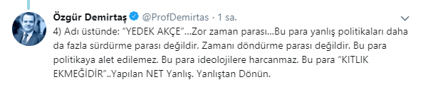 Adı üstünde: “YEDEK AKÇE”…Zor zaman parası…Bu para yanlış politikaları daha da fazla sürdürme parası değildir. Zamanı döndürme parası değildir. Bu para politikaya alet edilemez. Bu para ideolojilere harcanmaz. Bu para “KITLIK EKMEĞİDİR”..Yapılan NET Yanlış. Yanlıştan Dönün.
