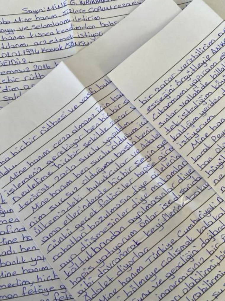 Mine Hanım, ben suçlu olduğum için hapis yatmıyorum. Suçsuz olduğumu başta beni yargılayanlar olmak üzere ülkemizdeki hukukçular ve adalet çalışanları iyi biliyor. Ama ellerinden bir şey gelmediğini de ben iyi biliyorum.