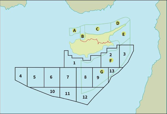 GKRY’nin Kıbrıs’ın güneybatısında ilan ettiği 1, 4, 5, 6, 7 numaralı parseller ile Türkiye’nin kıta sahanlığı, güneydoğusundaki 1, 2, 3, 8, 9, 12 ve 13 numaralı parseller ise KKTC’nin deniz sınır alanlarıyla örtüşmektedir, çatışmaktadır.