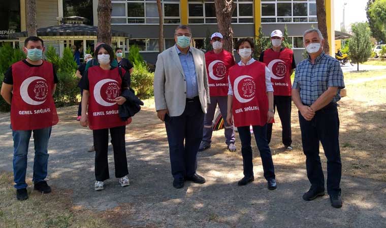 Genel Sağlık-İş olarak DEÜ Hastanesi Başhekim vekilini, yanına cumhur ittifakının temsilcilerini alarak meydan meydan gezmeyi bırakmaya, kendisi ile görüşmek için bekleyen sağlık emekçilerinin sorunlarına çözüm üretmeye çağırıyoruz. Başhekim vekili, siyasetin malzemesi olmak yerine yöneticisi olduğu kurumda çalışma barışını bozan değil sağlayan olmalıdır. Başhekim vekili eğer siyaset yapmak istiyorsa oturduğu koltuğu bırakarak, istifa etmelidir. Bugün idareci konumunda otururken iktidarın sözcüsü olanlara daha sonra neler olduğunu hep beraber gördük. Siz de göreceğiz çok yakında…