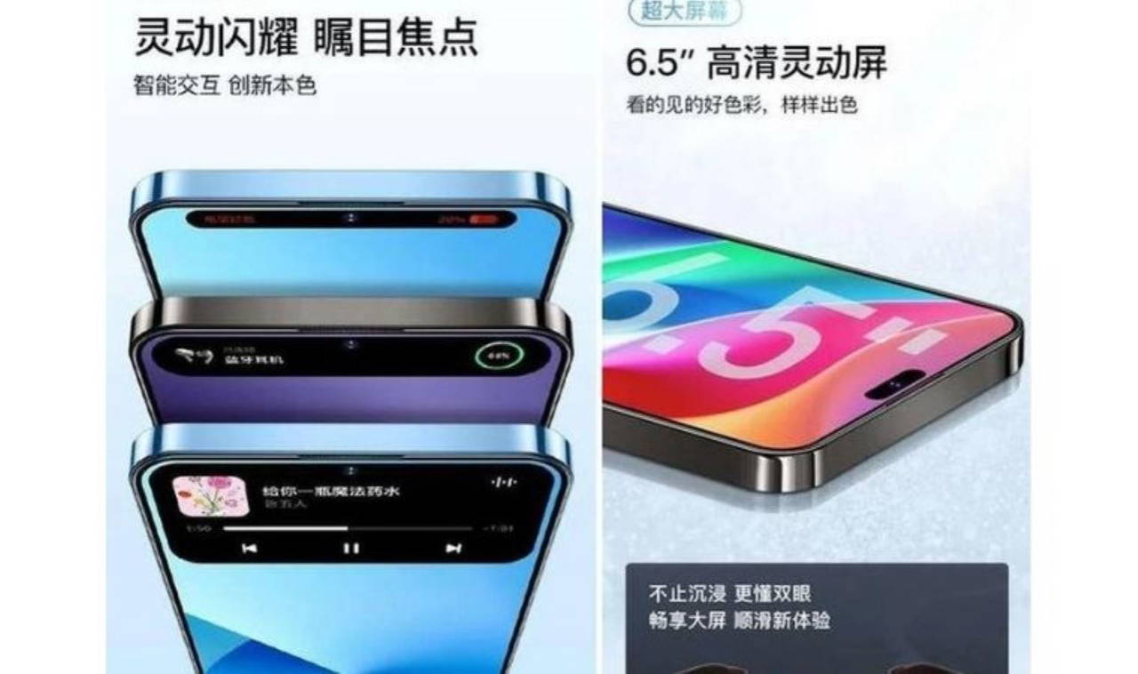 6.5 inçlik ekranıyla piyasaya giren telefon, 1600x728 piksel ekran çözünürlüğüne, 60Hz ekran yenileme hızına da sahip. Dynamic Island görünümünde olan ve iPhone'daki özellikleri taşımayan ön kamera sadece 5 Megapiksel.