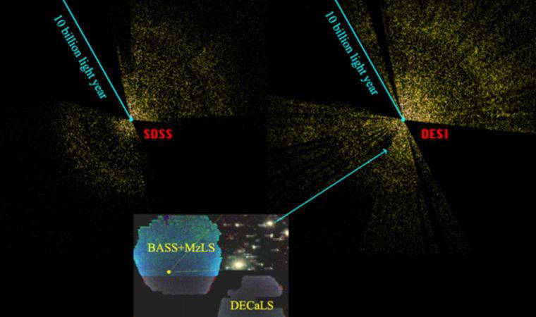 Bununla birlikte yayınladıkları çarpıcı resimde merkezdeki Dünya ve en uzaktaki galaksiler 10 milyar ışık yılı mesafede çizildi. Bu, 2026 yılına kadar 35 milyondan fazla galaksinin spektrumunu elde etmeyi amaçlayan beş yıllık görevlerinin yalnızca yüzde 10'unu oluşturuyor.