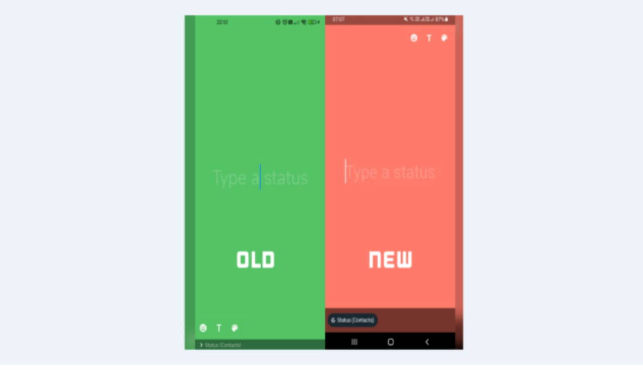 ShiftDelete'den aktarılan bilgilere göre; WhatsApp, Android cihazlarda durum oluştururken sol alt kısımda yer alan emoji, yazı ve renk paleti simgelerini ekranın sağ üst tarafına taşıyacak.