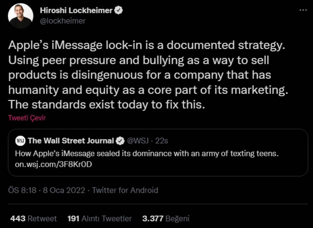 Lockheimer, konuyla ilgili düşüncelerini aktardı. Apple’ın iMessage servisini
