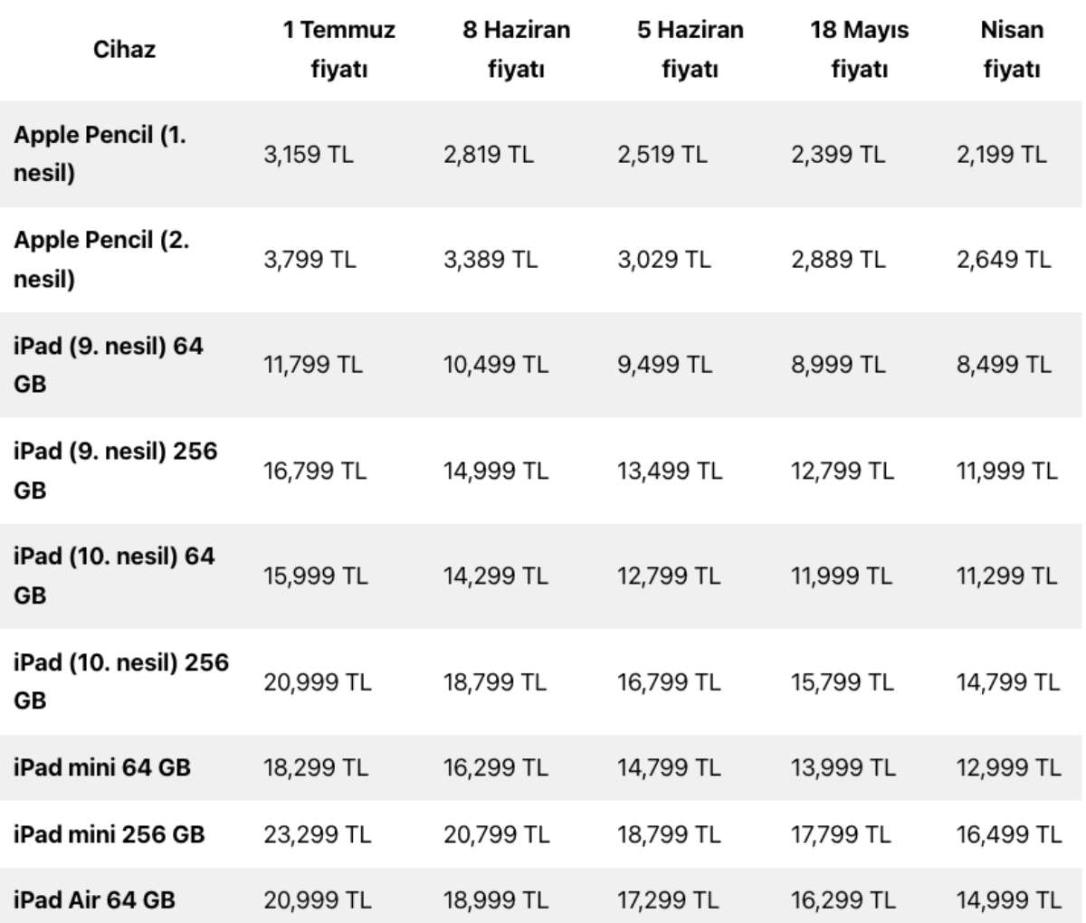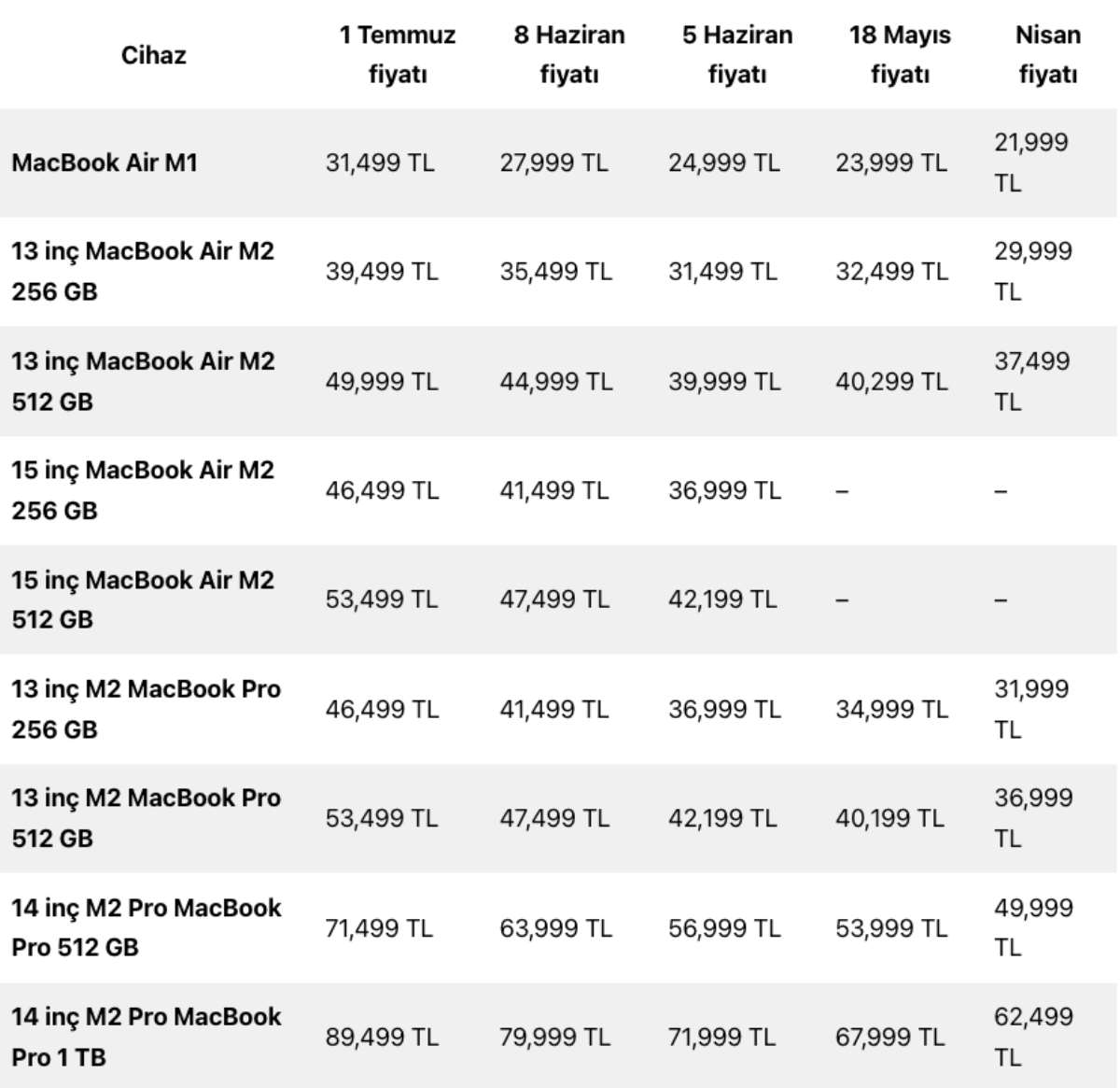 İşte Apple'ın son zam kararıyla birlikte güncellenen fiyat listesi...