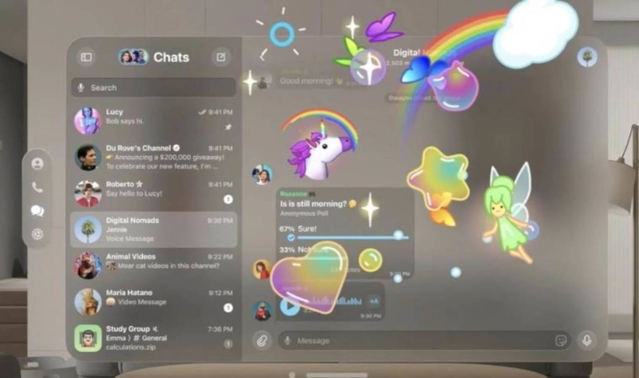Telegram CEO'su Pavel Durov'un paylaştığı tanıtım filminde, uygulamanın nasıl görüneceği ve temelde neler yapılabileceği gösteriliyor. VisionOS ile AR çıkartmaları ve konuşmalar çok daha iyi görünecek.