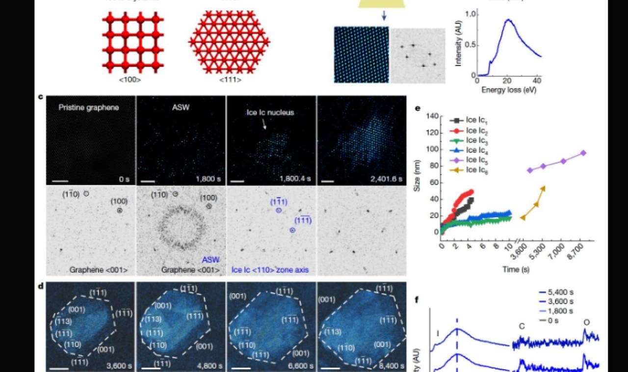 Nature dergisinde Çarşamba günü yayımlanan yeni bir araştırmada Çinli bilim insanları, suyun elmas benzeri yüzey merkezli kübik bir kristal yapıya dönüşerek nasıl donduğu hakkındaki gizemi mercek altına alarak, buz kristalitlerinin oluşumunu moleküler çözünürlükte gerçek zamanlı tanımladı.