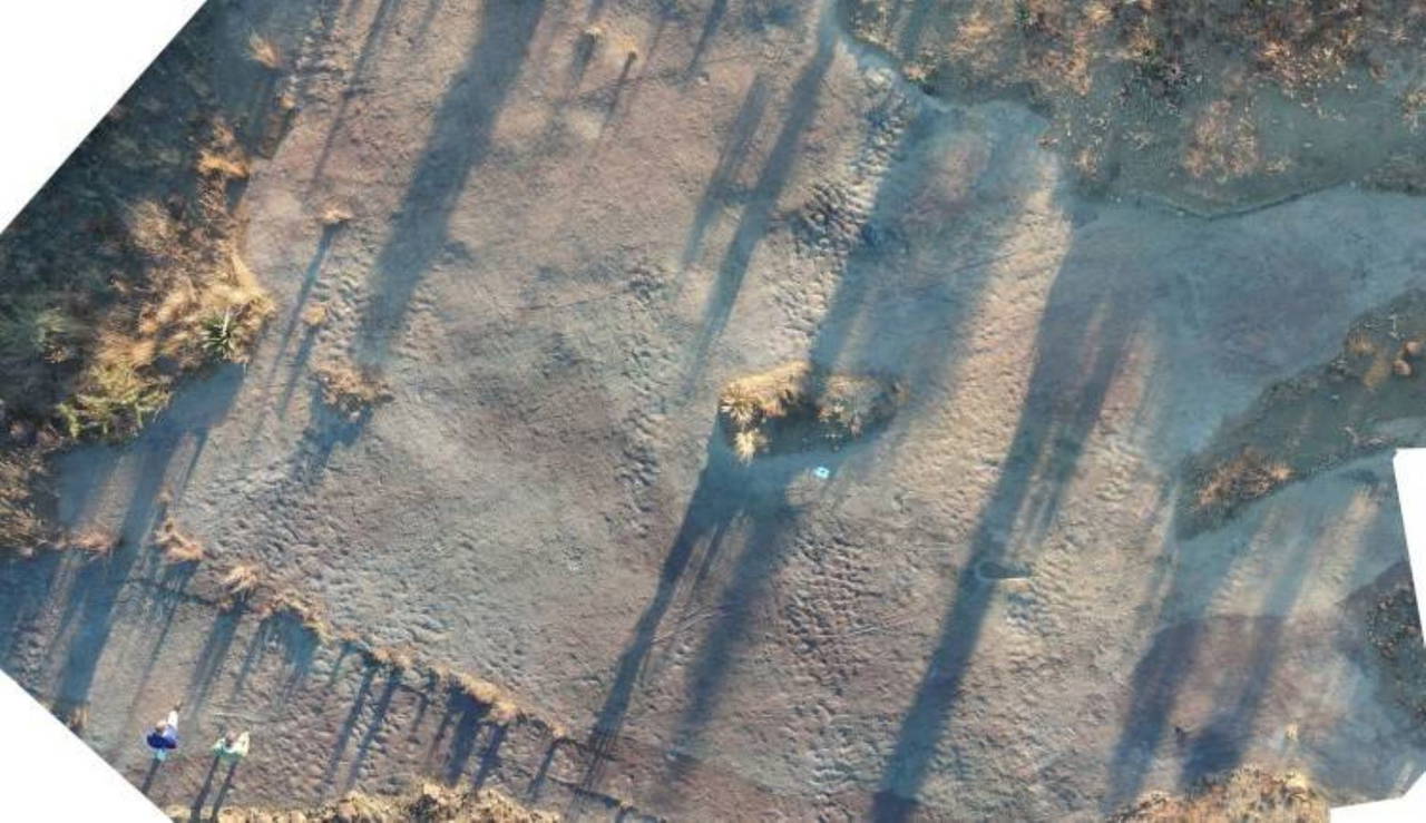 Güney Afrika'daki Witwatersrand Üniversitesi'nden David P. Groenewald ve meslektaşları tarafından PLOS ONE'da yayınlanan bir araştırmaya göre , araştırmacılar, alanı daha önce hiç olmadığı gibi incelemek için dronları ve 3D tarayıcıları kullandılar. Yaklaşık 255 milyon yıl önce timsah benzeri rhinesuchid temnospondyl'in bıraktığı tarih öncesi izleri ve daha küçük yaratıkları tespit ettiler.