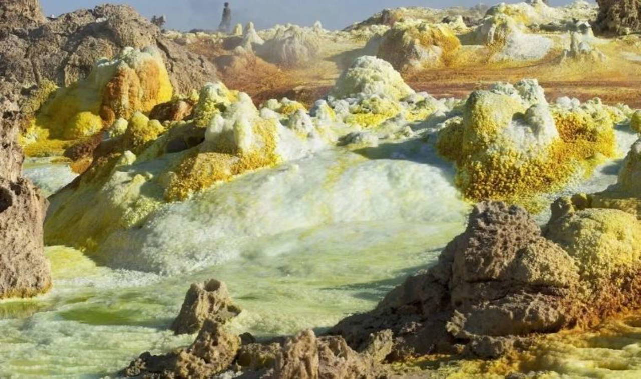 Bölgenin vahşi rengi, deniz suyu ile kükürt, demir ve bakır gibi volkanik mineralleri bir araya getiren eşsiz arazisinden kaynaklanıyor. Araştırmacılar, klor ve kükürt gazı kombinasyonlarını ortaya çıkarmasına rağmen, 2017 yılında Dallol’un sularında çok az olsa da yaşamın gelişebileceğini keşfettiler.