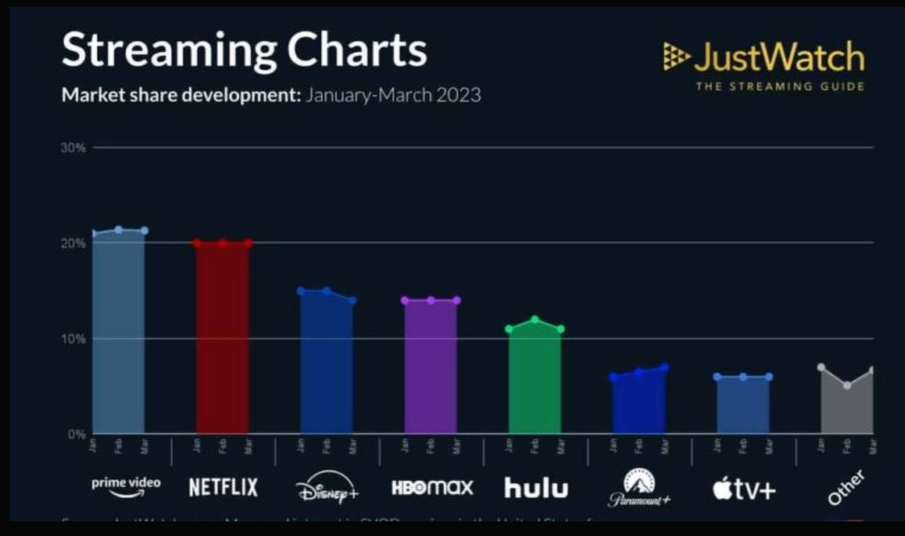 Listede sırasıyla yer alan diğer platformlar ise şu şekilde: HBO Max, Hulu, Paramount Plus, Apple TV Plus ve diğerleri yer alıyor.