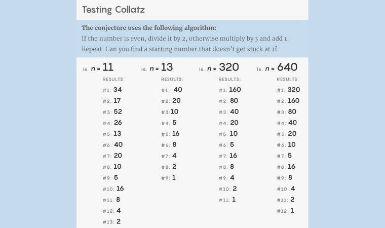 Hatta deneyimli matematikçiler Collatz sanısından uzak durulmasını bile söylüyor. Collatz sanısı, muhtemelen matematikteki çözülmemiş en basit problemdir ancak onu bu kadar çekici kılan da tam olarak basit gözükmesinin altında yatan sistemi.