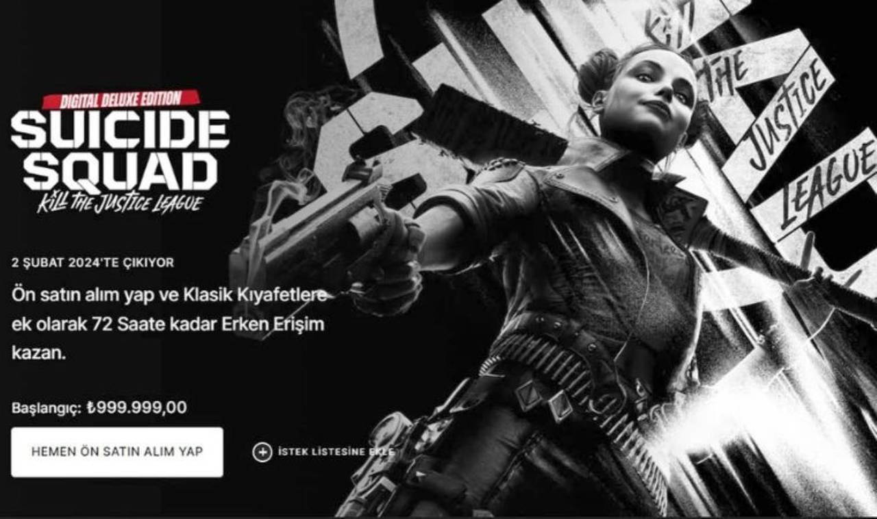 Her hafta ücretsiz oyunlar vermeye devam eden Epic Games, bu kapsamda geçenlerde Suicide Squad: Kill the Justice League'i ücretsiz vermişti. Ancak buradaki sorun oyunun daha piyasaya çıkmamış olmasıydı. Yanlış fark edildikten sonra oyuna ücretsiz sahip olanlardan bir bir geri alınan oyun, şimdi de 999 bin 999 TL'lik fiyatıyla şaşkına çeviriyor.