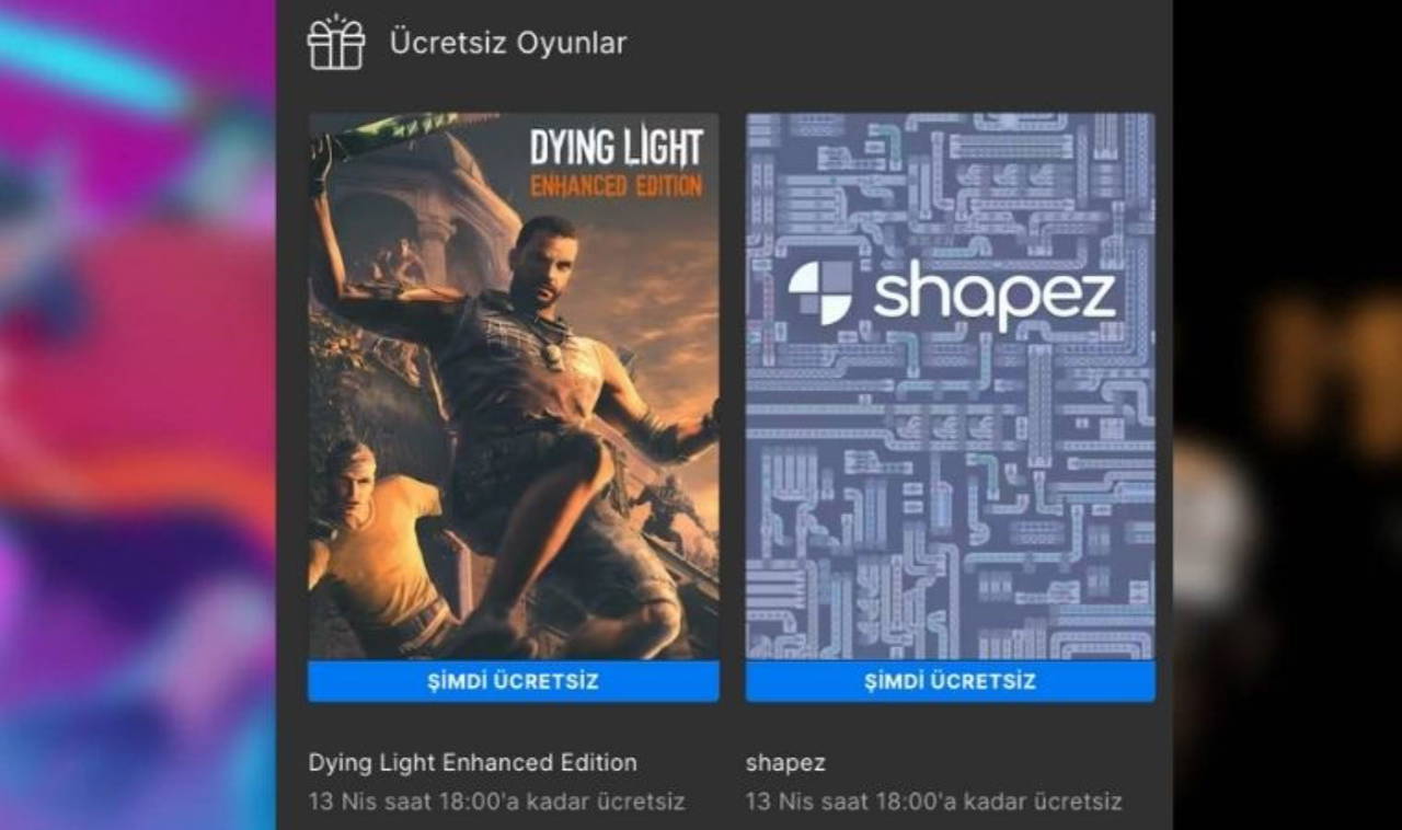 Epic Games, 13 Nisan'a kadar hem Dying Light: Enhanced Edition'ı hem de shapez adlı oyunu ücretsiz olarak veriyor. Normal fiyatı 59 TL olan olan Dying Light: Enhanced Edition, ve normalde 29.50 TL olan shapez, 13 Nisan saat 18.00'e kadar ücretsiz bir şekilde oyunseverlerin kütüphanesine eklenebiliyor.