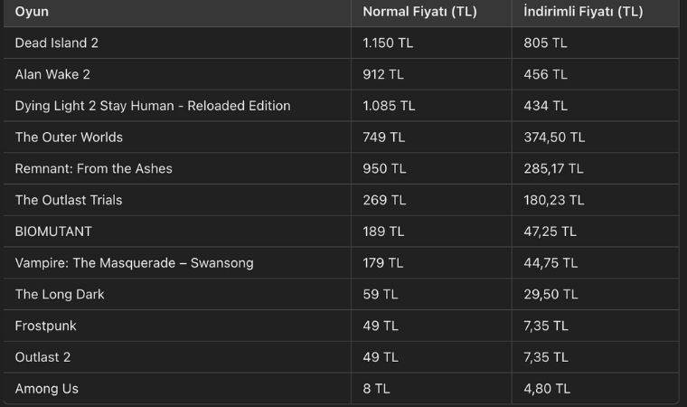 Epic Games'te farklı dönemlerde indirimler yapılıyor. Onlardan biri de Ekim'in son haftası başlayan Cadılar Bayramı indirimi. Burada oyunların birçoğunda indirim var. Yüzde 80'e varan indirimler hangi oyunlarda geçerli?