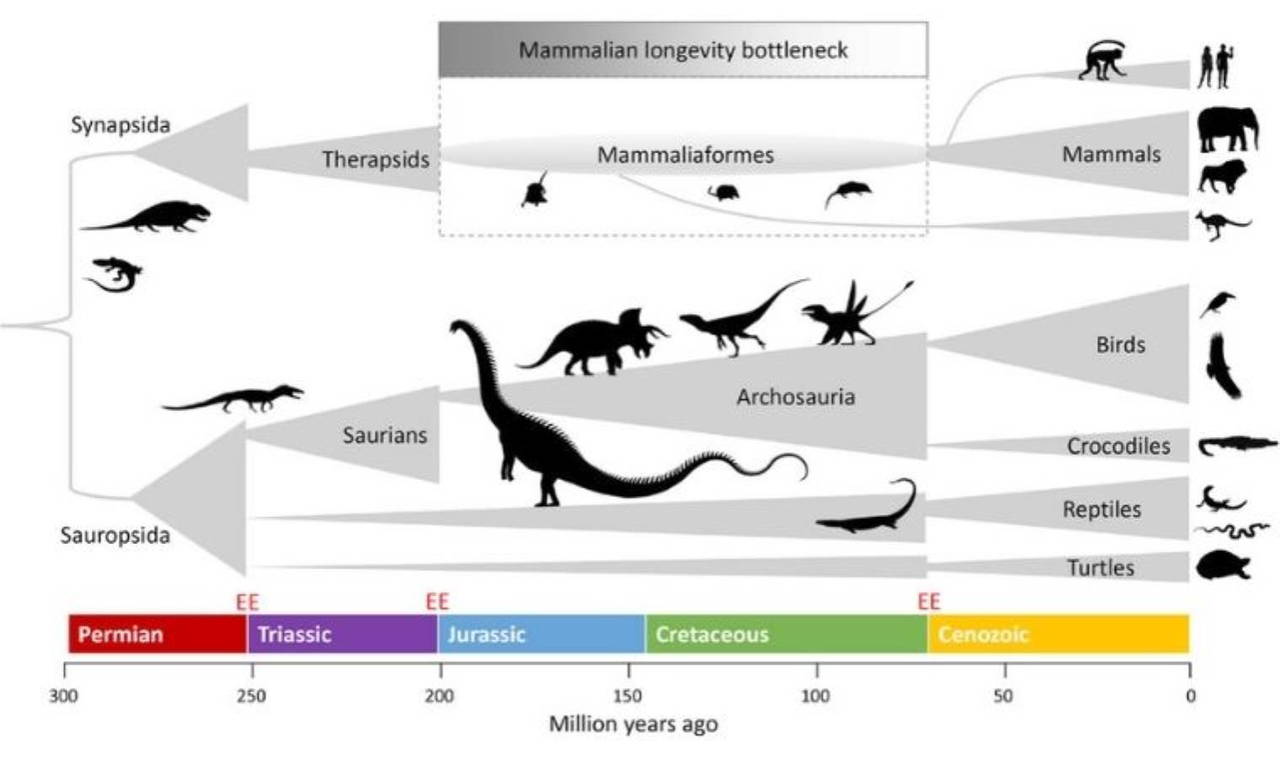 Populer Science Türkçe'de yer alan ayrıntılara göre Birmingham Üniversitesinde çalışan mikrobiyolog Joao Pedro de Magalhaes, yeni yayınlanan makalesinde “uzun ömür darboğazı” hipotezini anlatıyor. Magalhaes’a göre dinozorlar Dünya’da baskın tür oldukları zamanlarda, çok daha ufak boyuttaki memelilerin yaşamak için hızlı şekilde üremesi gerekiyordu. Bu durum, evrim ilerledikçe uzun ömür genlerinin de ıskartaya çıkmış olabileceği anlamına geliyor.