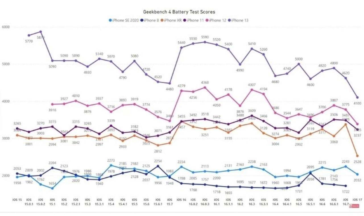 iAppleBytes ise iPhone SE 2, iPhone XR, iPhone 11-12 ve 13 modellerini araştırdı. iOS 17 güncellemesinin pil ömrünü gerçekten etkileyip etkilemediğini sorgulayan ekibe göre kullanıcıların bildirdiği sorun gerçek. Yani test sonrasında eski modellerde pil ömrü azalıyor.