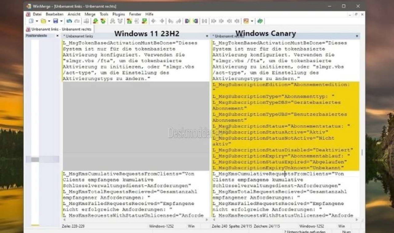 Donanımhaber'in aktardığı haberde Alman medya kuruluşu Deskmodder, WinMerge kullanarak Windows 11 23H2 önzileme sürümü yapısıyla karşılaştırdığında Canary sürümünün derinliklerinde INI yapılandırma dosyasında abonelikle ilgili birkaç bulguya rastladı.