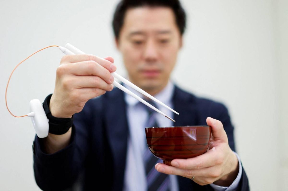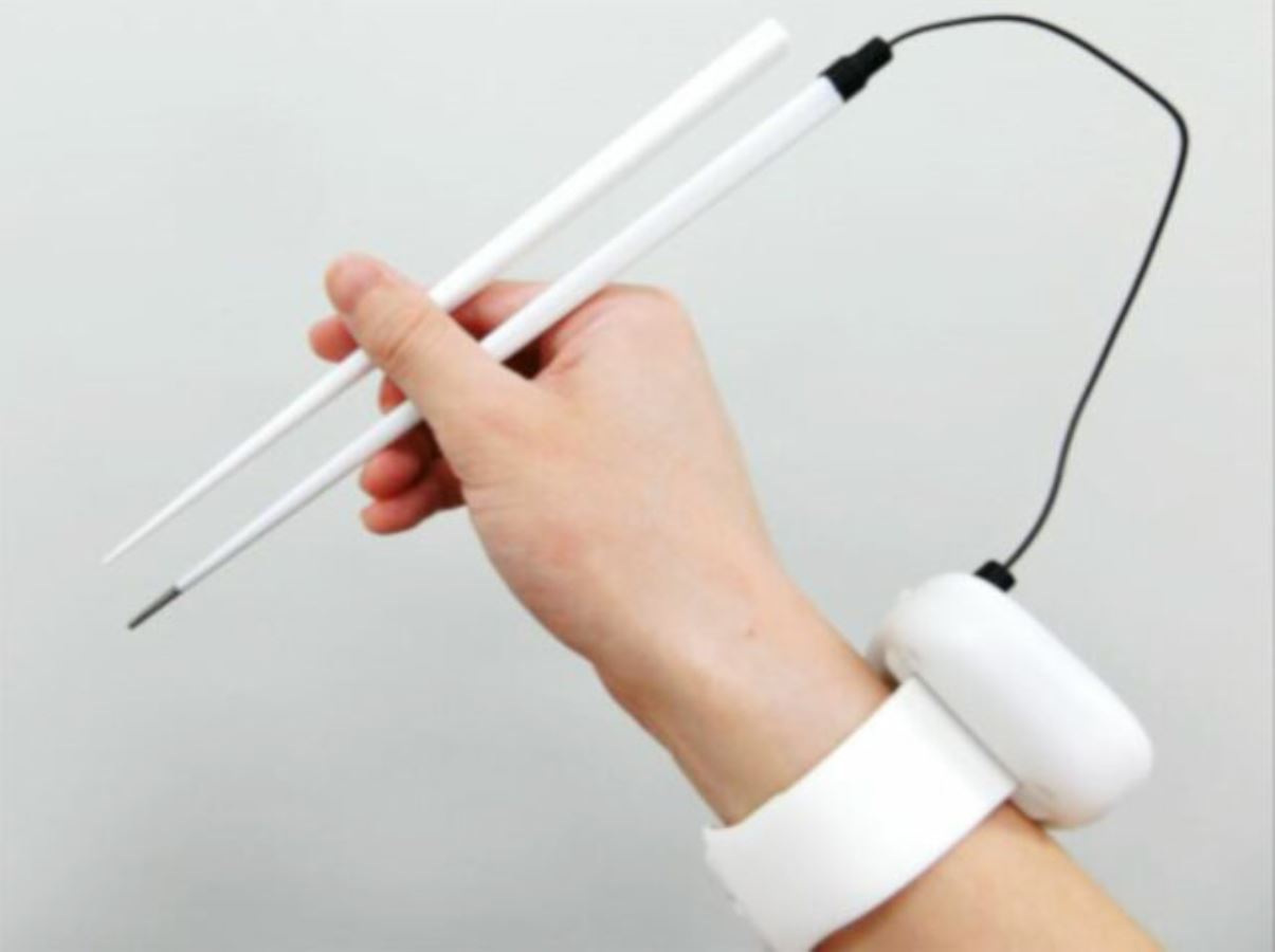 Meiji Üniversitesi'nden Prof. Dr. Miyaşita Homei, meşrubat üreticisi Kirin Holdings iş birliğiyle elektrikle uyarılan ve el bileğine giyilebilen mini bilgisayar kullanarak tat artıran yemek çubuğu geliştirdi.