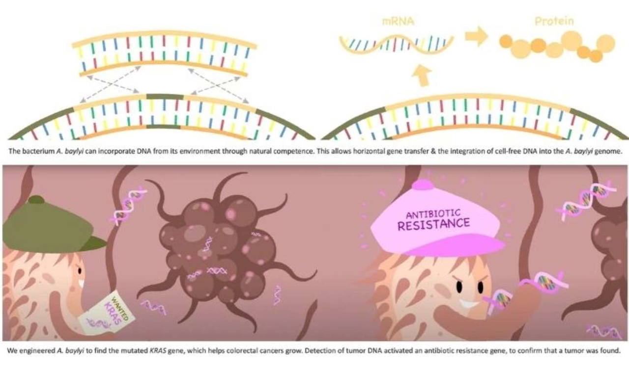 Bilim insanlarının yaptığı şey, A. baylyi bakterisini, insan kanser hücrelerinde bulunan DNA'yı taklit eden uzun DNA dizileri içerecek şekilde tasarlamak oldu. Bu diziler, yakalanan kanser DNA'sına kilitlenen bir fermuarın diğer yarısı gibi bir işlev görüyor. Bilim insanları testleri için kolorektal tümörlerde yaygın olarak bulunan mutasyona uğramış KRAS genine odaklandılar. Eğer mutasyonlu DNA'yı bulan A. baylyi bakterisi bunu genomuna entegre ederse, bağlantılı bir antibiyotik direnç geni de aktive oluyor. Bu sayede kanser hücrelerinin tespiti sağlanıyor.