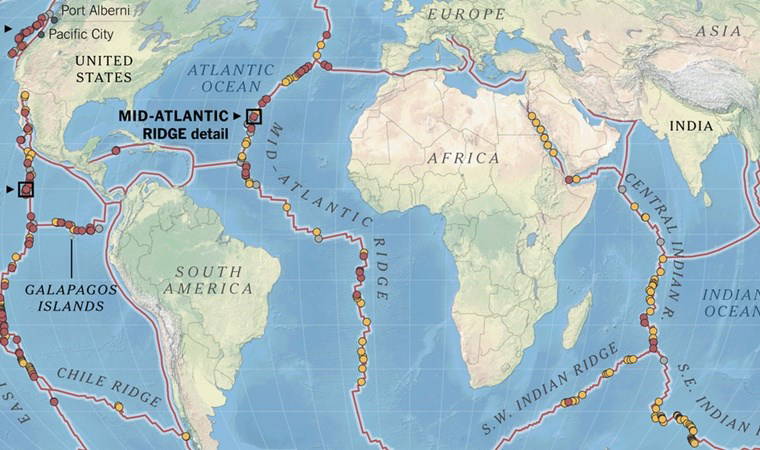 - Fakat en büyük engel ise, Atlantik’in ortasında yer alan devasa volkanik bölge, Mid-Atlantic Ridge (Atlantik Orta Sırtı). Bu aktif volkanik bölge, Amerika kıtalarını Avrupa ve Afrika’dan ayıran kıtasal plakaların hareketiyle oluşuyor. Bölgenin yüzeyi İzlanda’da suyun üzerinde görülebiliyor.