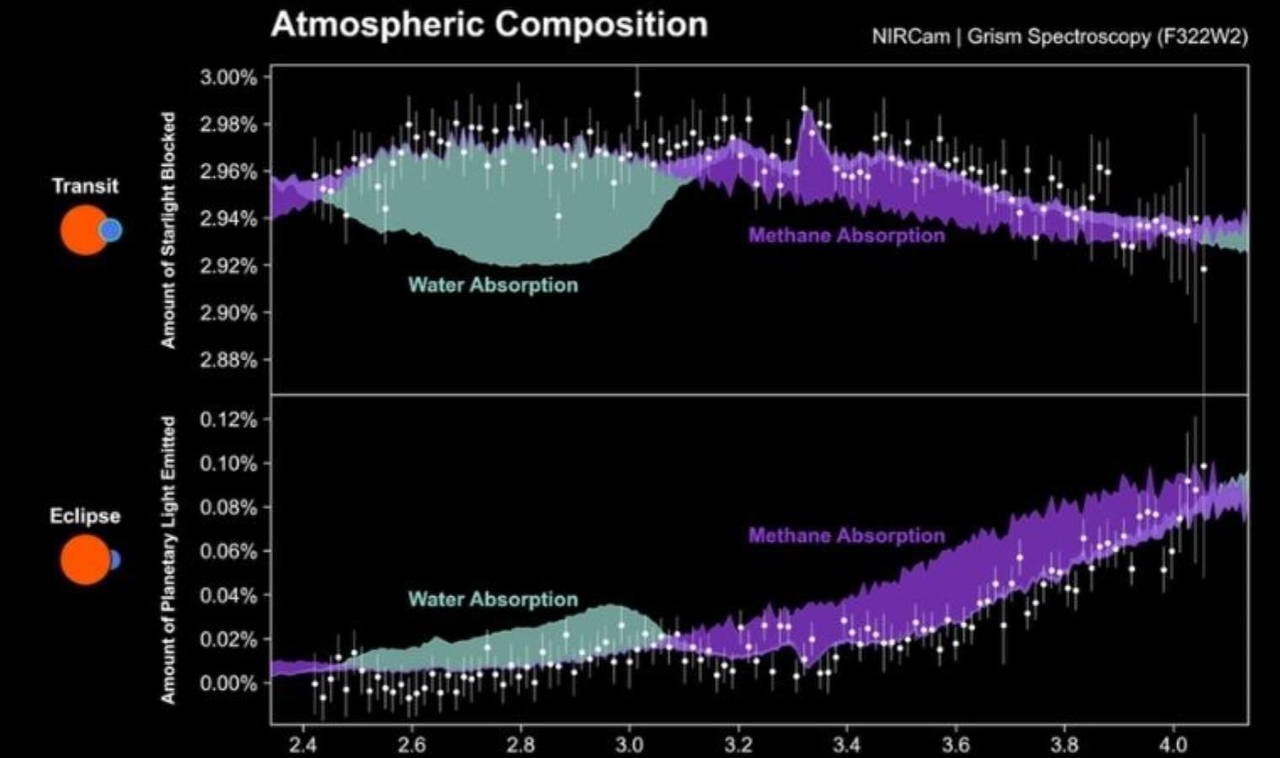James Webb Uzay Teleskobu (JWST), yaklaşık 163 ışık yılı uzaklıkta bulunan Jüpiter benzeri bir dünyanın atmosferinde metan ve su buharı tespit etti. Gökbilimciler bu keşfi, WASP-80 b adlı güneşdışı gezegenin ya da "ötegezegenin" yaklaşık her 3 Dünya gününde bir yörüngesinde döndüğü ana kırmızı cüce yıldızının önünden geçişini izleyerek gerçekleştirdi.