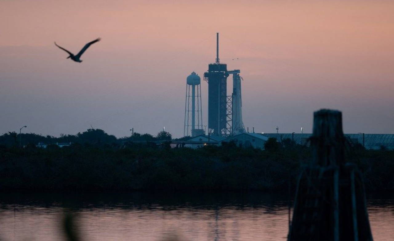 Crew Dragon uzay aracını taşıyan SpaceX Falcon 9 roketi, Amerika Birleşik Devletleri'nin Florida eyaletindeki NASA'nın Kennedy Uzay Merkezi'nde gün doğarken fırlatma rampasında görülüyor, 27 Mayıs 2020. (Joel Kowsky/NASA/Dağıtım Xinhua aracılığıyla)