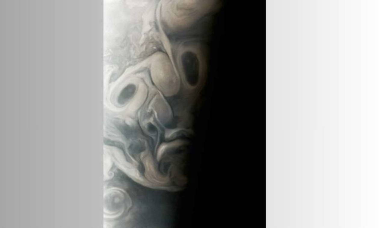 NASA'nın bir blog yazısında açıkladığı üzere, yüz görüntüsü Jüpiter'in terminatörü boyunca uzanan çalkantılı bulutlar ve fırtınalar, yani gezegenin gündüz ve gece taraflarını ayıran çizgi nedeniyle oluşmuş.