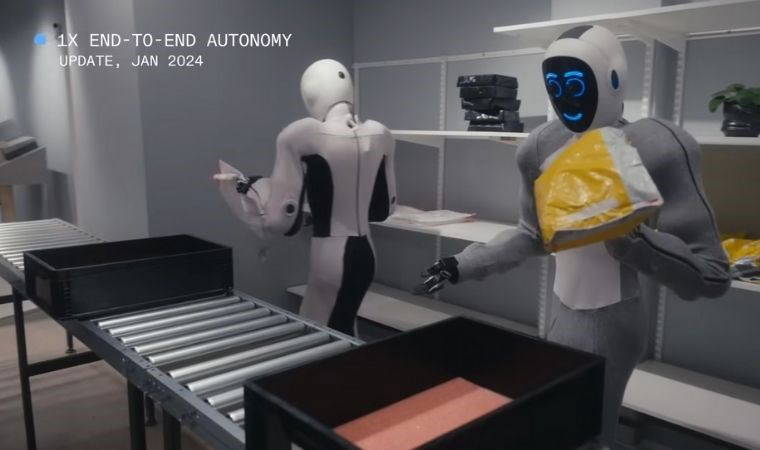 Gelişmiş bir yapay zeka sistemi kullanan şirket, Eve adını verdiği robotların otonom olarak çalıştıkları videoyu paylaştı.