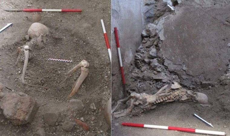 Bölgede 50'li yaşlarda iki erkek iskeleti de çıkarıldı. Bilim insanları kemiklerdeki kırık ve çatlakların, bugünkü depremlerde ortaya çıkanlara benzerlikler taşıdığını gözlemledi. Ayrıca kalıntıların küllerin altında değil üstünde bulunması da ölümlerinin yanardağ patlamasından kaynaklanmadığını gösteriyordu.