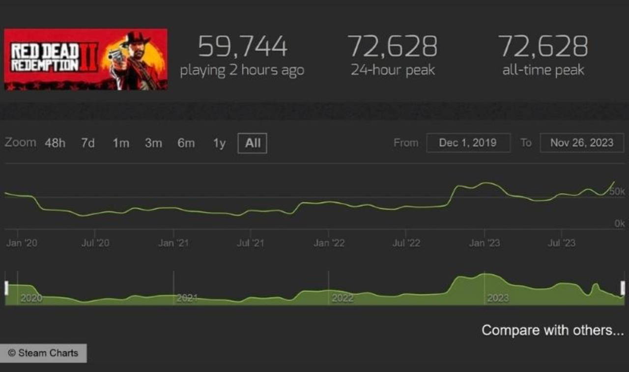 Steam Charts verilerine göre oyunda rekor 25 Kasım'da kırıldı. Bu tarihte 72 bin 628 kişi oyunu aynı anda oynadı ve dünyanın en yüksek eşzamanlı oyuncu sayısına ulaşıldı.