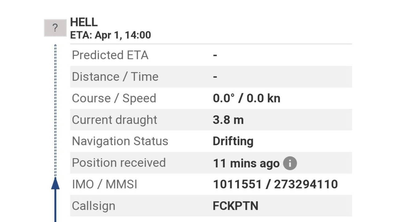 Bunun ardından hackerlar, yatın rotasını da değiştirerek hedef noktayı ‘Hell (Cehennem)’ olarak düzenledi. Hell’in yanı sıra grubun da isminin ‘Anonymous’ ve ‘Anonleaks’ olarak görüldüğü hedef nokta, ayrıca Putin’e de küfür içerdi: ‘FCKPTN’.
