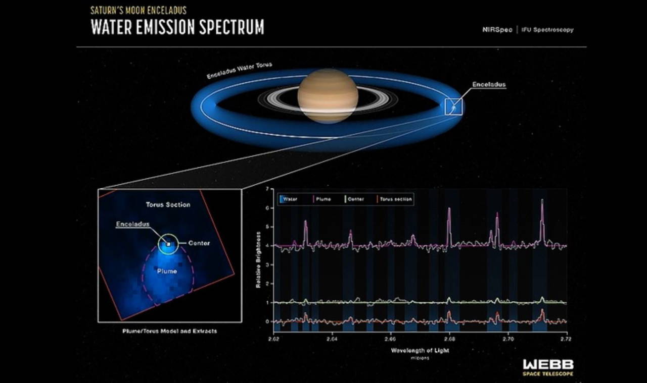 Webb teleskobunun yakın kızılötesi tayfçeker cihazını kullanan astronomlar, buhar sütununun özelliklerini tespit etmeyi başardı.