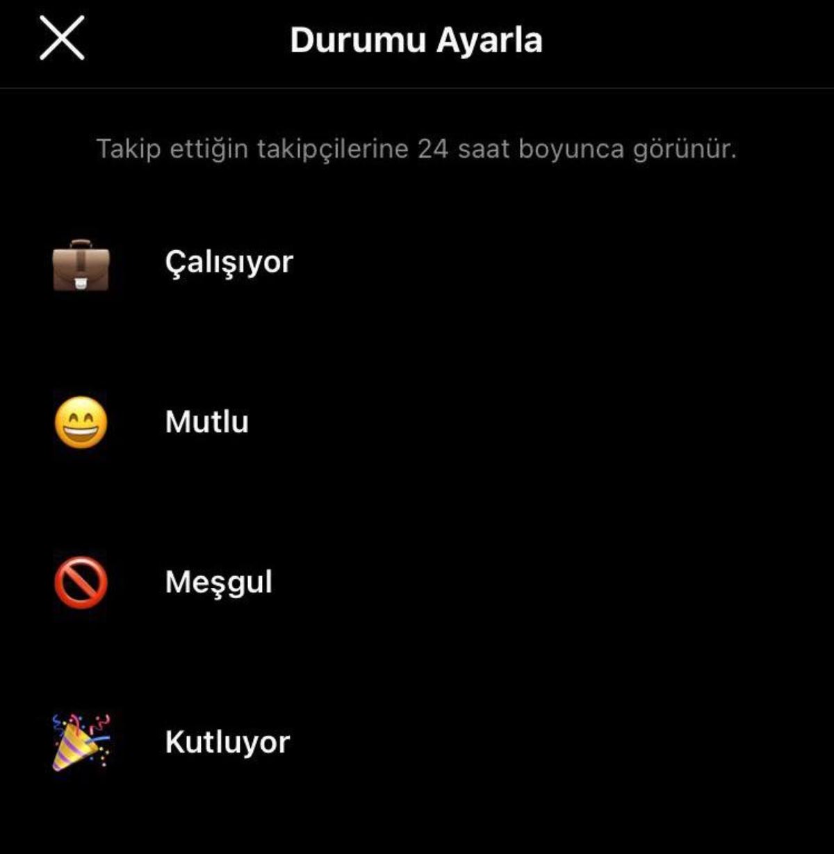 Özellik her kullanıcıya açıldığında, 'çalışıyor, kutlama yapıyor, meşgul ve mutlu' gibi durum ekleme seçenekleri arasından birini işaretlemeniz yeterli olacak.
