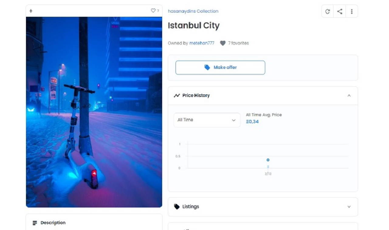 Webtekno.com'da yer alan habere göre, ülkemizde birçok şehri beyaza bürüyen kar yağışıyla birlikte İstanbul'dan da birbirinden güzel kar manzaraları sosyal medyada paylaşıldı. Bir kullanıcının da trafik sıkıntısından sıkılan İstanbullular tarafından sıkça tercih edilen elektrikli scooterın karlar içindeki fotoğrafı sosyal medyada viral oldu. Birçok kullanıcı benzer görüntüleri gönderirken, kullanıcı bu fotoğrafı NFT'ye dönüştürdü.