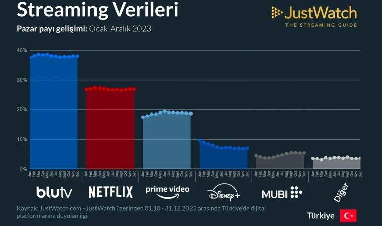 Aradığınız dizi ya da filmin hangi platformda olduğunu gösteren ve içerikleri bir araya getiren JustWatch, Türkiye'de 2023 yılının son çeyreğine yönelik verilerini açıkladı.